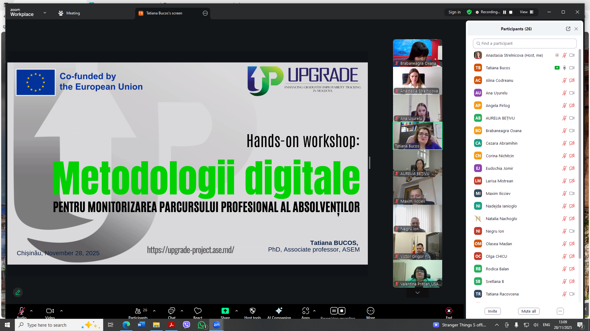 On November 28, 2025, secon intensive workshop was organized within the framework of the UPGRADE project – Enhancing Graduates’ Employability Tracking in Moldova (Project No. 101129166).